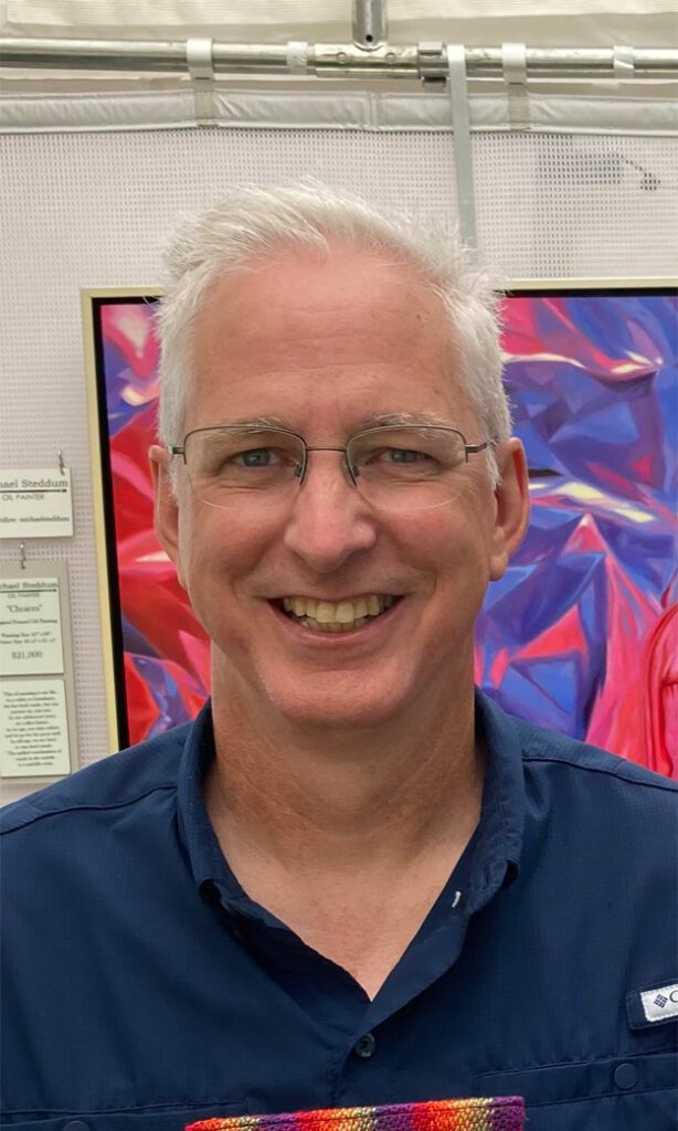 My oil paintings are of transparent vessels that represent people or situations that we find ourselves in. The narrative for each painting is positive and often humorous, providing an additional layer of discovery for the viewer after their initial reaction of, “these are paintings?” I focus on the abstract shapes, values, and hues, to create a realistic image that people often mistake for photographs. Each painting has multiple thinly applied glazed layers, which increases the amount of labor in work, but allows me to achieve clarity with luminous color in the finished painting. I use a strong light source in each work because I feel this makes the still life radiant with energy. It is my goal to have objects reflect and absorb the colors and light around them giving them a vibrancy that draws the viewer in. While painting, I exercise a technical skillset that I have acquired over the last thirty years, but once the work is finished, I look forward to sharing the art and story of each work with the multitude of people I am fortunate enough to come into contact with at shows around the nation. Traveling to art shows and meeting people from different walks of life is an amazing benefit of being an artist, and is an important part of creating my art.