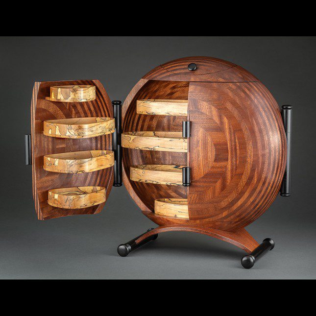 I love wood and am fascinated by wooden mechanisms and the intersections of various three-dimensional geometric shapes. I make boxes entirely of wood, including the hinges, fasteners, latches, and drawer slides. Unusual, highly figured, and salvaged woods are my materials of choice. Originally trained as an aeronautical engineer, I have been making boxes full-time since 1982.