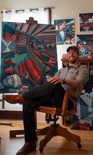 Going against my natural craving for order and precision, I take regular people in ordinary settings and warp them into abstract compositions. I generally work from the primary colors alone and blend other colors as needed. This allows me to keep an overall vibrant tone to my work. Though my formal training ended in 2006 with my graduation from Trinity Valley School in Fort Worth, my passion for art has persisted over the years as my identity as an artist continues to develop.
